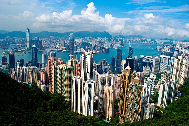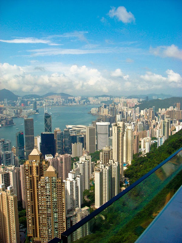 At the top of Victoria Peak, there's this big mall/tower called Peak Tower that offers amazing downward views of Hong Kong's Central Business District. A great place for panoramas!